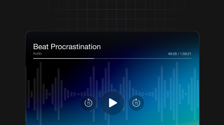 Audio course that teaches your customers practical strategies to overcome procrastination, boost productivity, and manage time effectively.